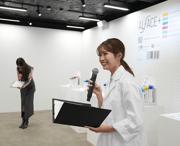 貴島明日香さん・しなこさんのトークショー タレントやアナウンサーとして活躍中の貴島明日香さんがMCを務めるトークショーでは、オルフェスのアンバサダーのYouTuber・しなこさんがスペシャルゲストとして登場。お二人のフェイスマスクを使ったリアルな肌ケア事情に会場のお客さんたちも興味津々です。