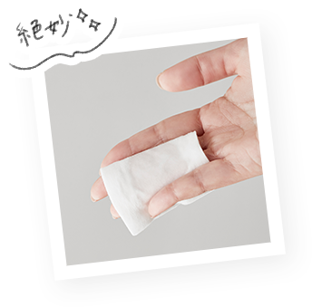 STEP - 01 洗顔後、コットンに500円硬貨大よりやや大きめにたっぷりとります。 STEP - 02 拭き取るように顔全体になじませます。