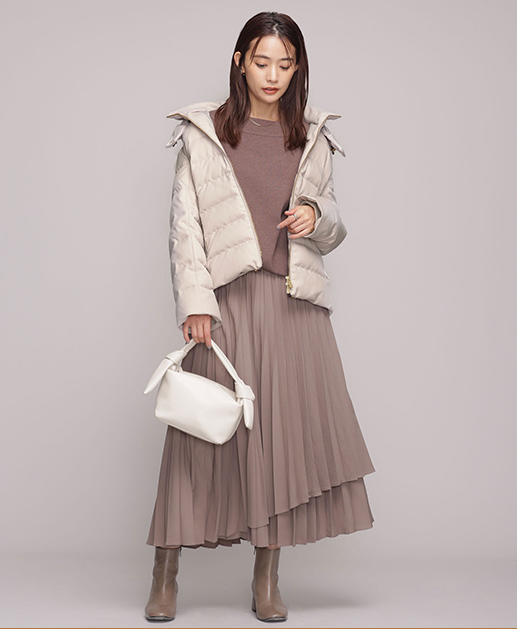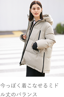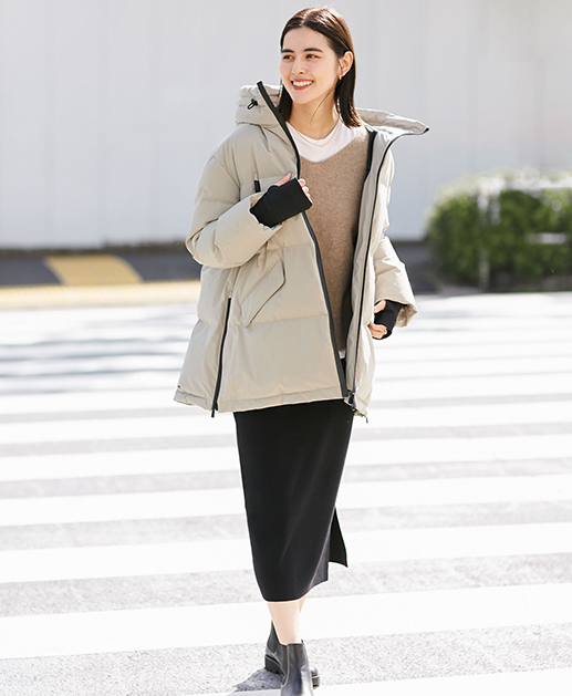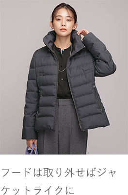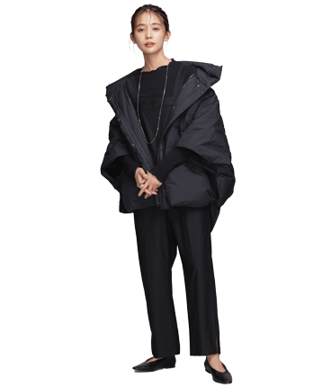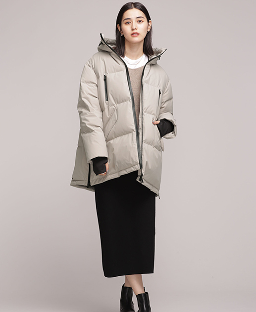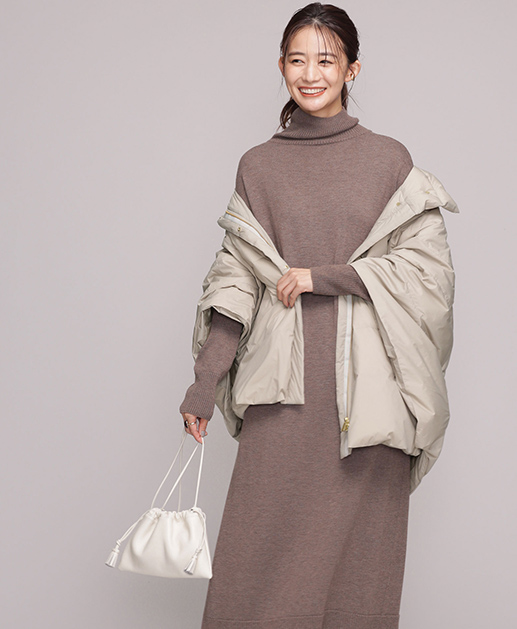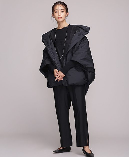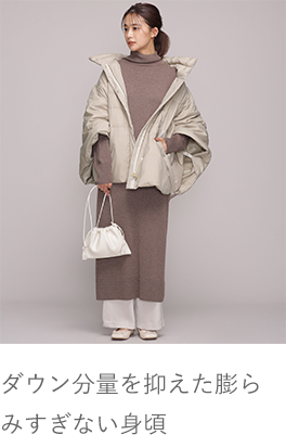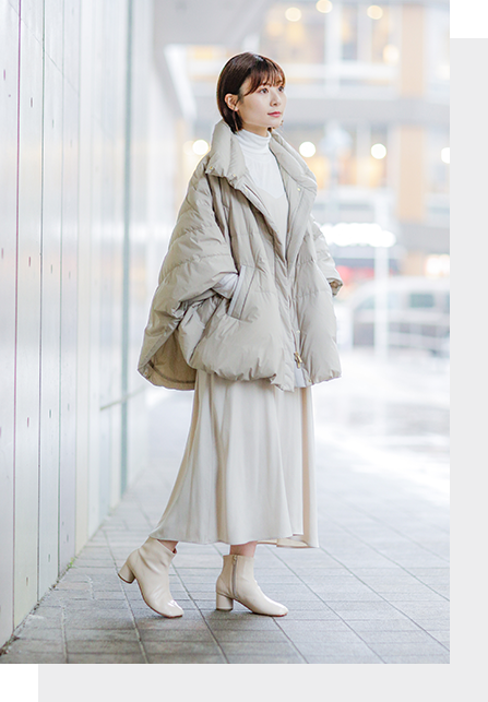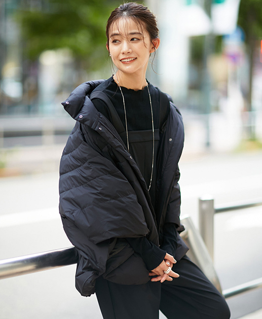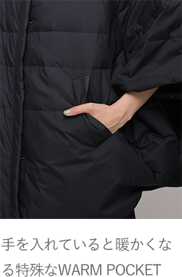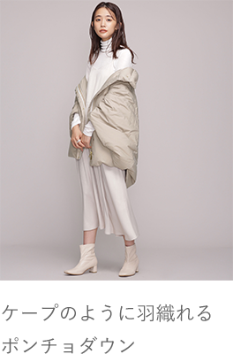 LIGHT - 1 ストールライクにも使える旬のポンチョ型のダウン。羽織ればモード感が出て1枚で主役!洗練された雰囲気を演出できます。