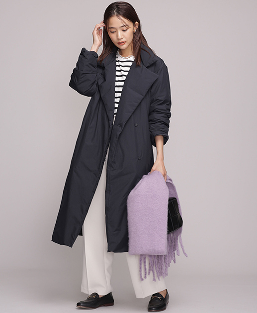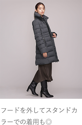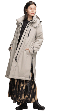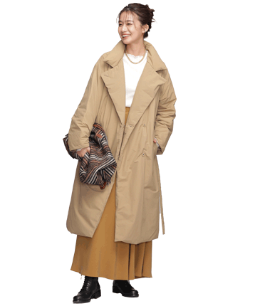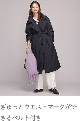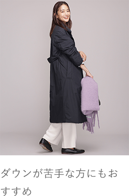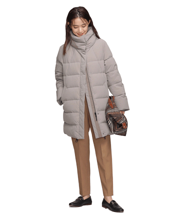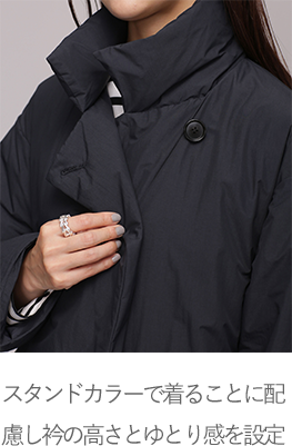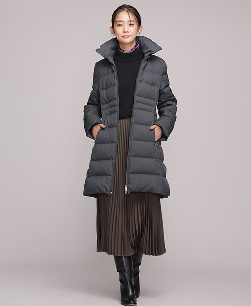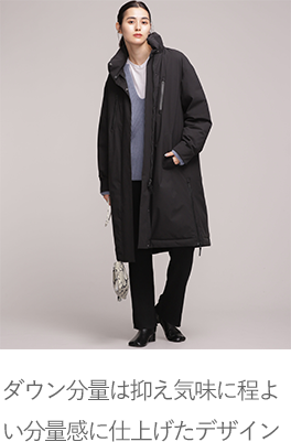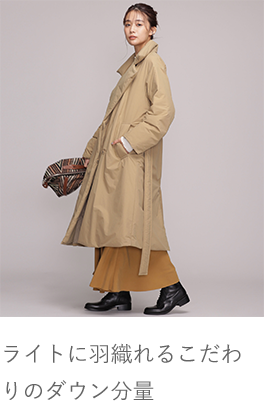 LIGHT - 2 ライトな羽織りとしても使えるので長い間重宝するコート型のダウン。ベルト付きなので、襟を上まで留めて着たり、あけて羽織ったり、ベルテッドしたり色々な表情で楽しめます。