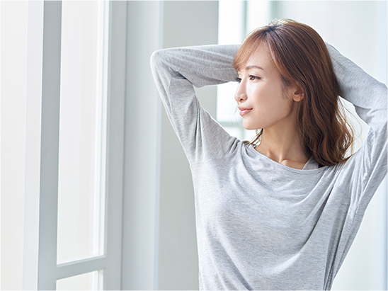深呼吸を常日頃意識して、できるだけ長い呼吸を意識しましょう。呼吸が浅くなると酸素がカラダに運ばれなくなるので、リラックスできません。美肌とダイエットにも繋がります。