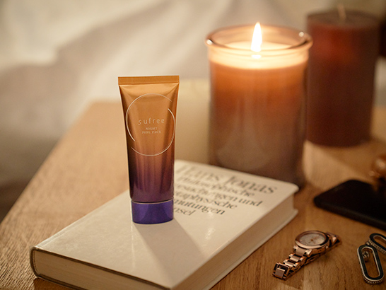 千波さんも愛用中のアイテムが、毎晩寝る前に使うナイトピールパック「sufree(スフリー)」。眠っている間に賢くスキンケアができちゃう、忙しい大人女子にとって救世主アイテムです。