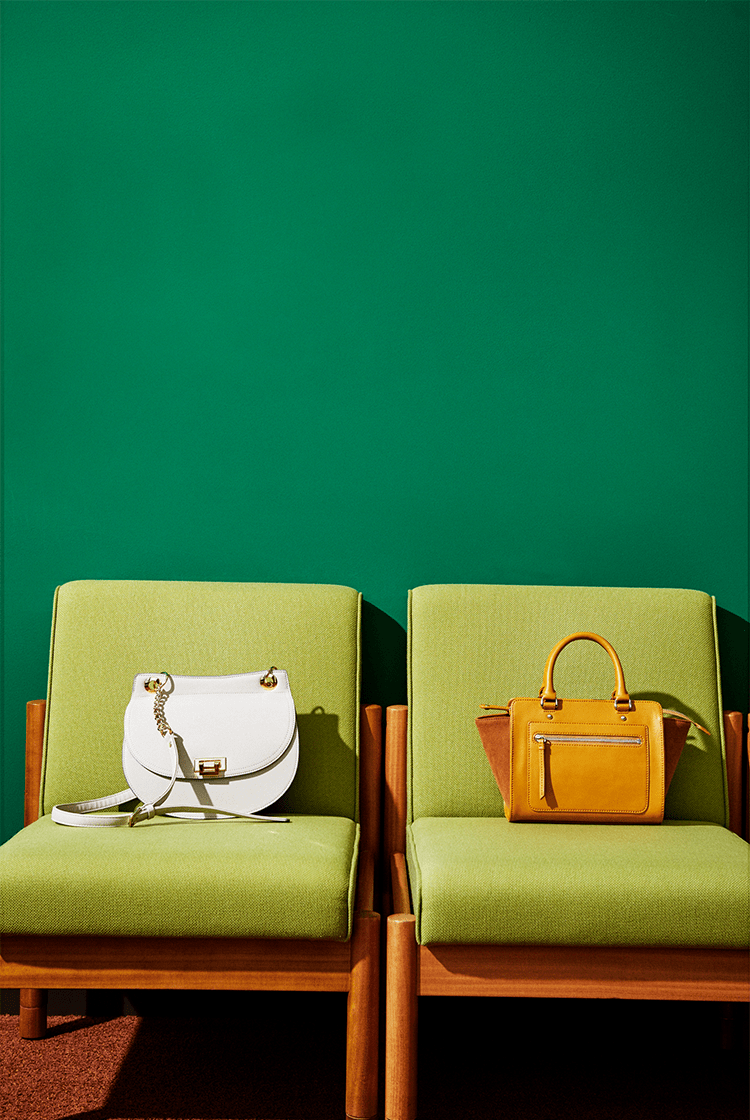 ONOFF問わず持て暑い夏に大活躍するミニマム&クリーンな雰囲気のバッグ。可愛らしいフォルムなので大人っぽすぎず、夏の上品なお嬢さんコーデに仕上がります。 (バッグ左¥16,200、右¥14,580/ダイアナ) www.dianashoes.com