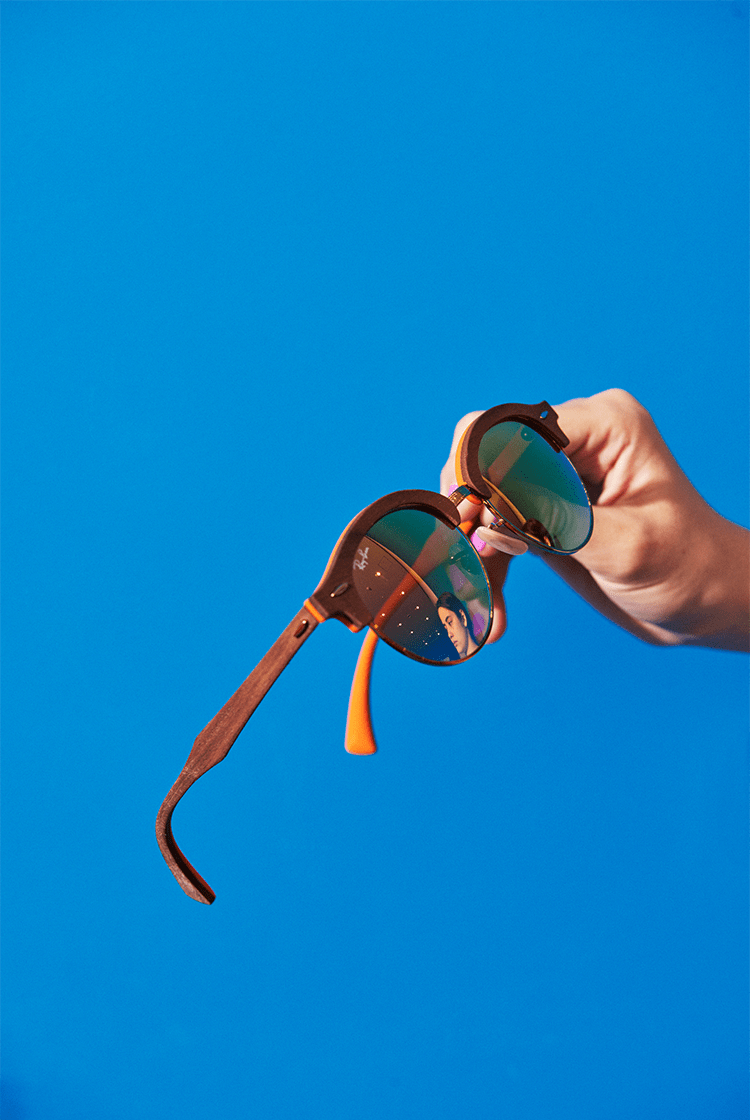時代を超えて愛され続けるレイバンの人気モデル「クラブラウンド」。今シーズンは、フレームにプレシャスウッドを採用した、洗練されたデザインも登場。 (サングラス¥47,520/レイバン) japan.ray-ban.com